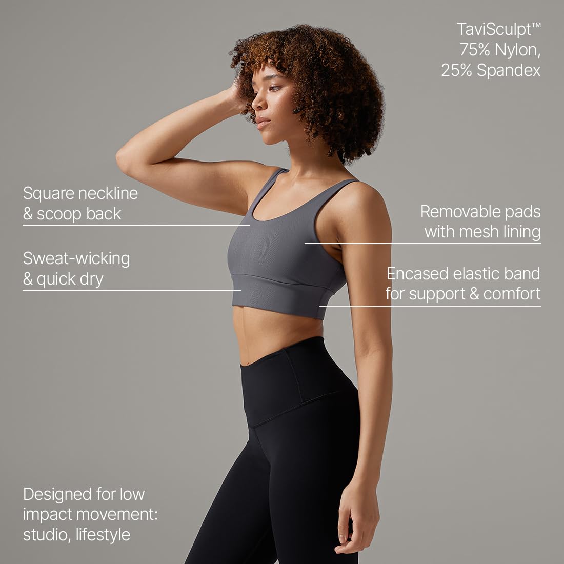 TAVI NOIR Empower Low Impact Sports Bra for Women – Breathable, Sweat-Wicking Workout Gym Yoga Sports Bra with Removable Pads