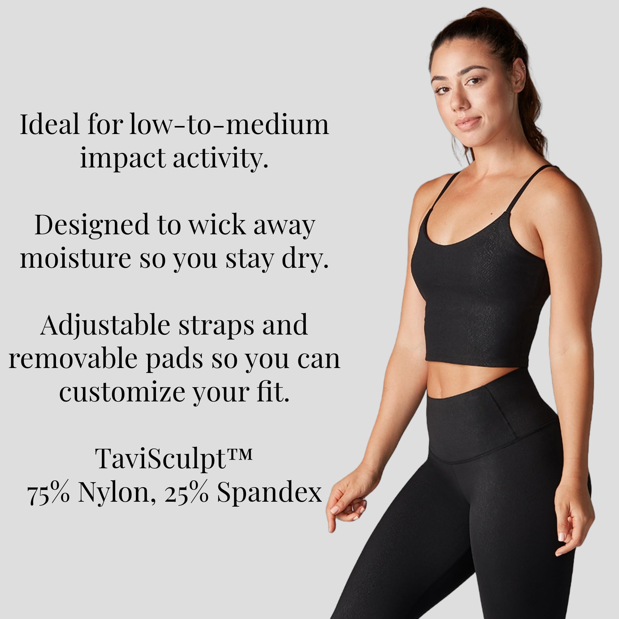 TAVI Women’s Cami Bra | Low to Medium Impact Activities | Adjustable Straps & Pads | Barre, Yoga, Pilates & Studio
