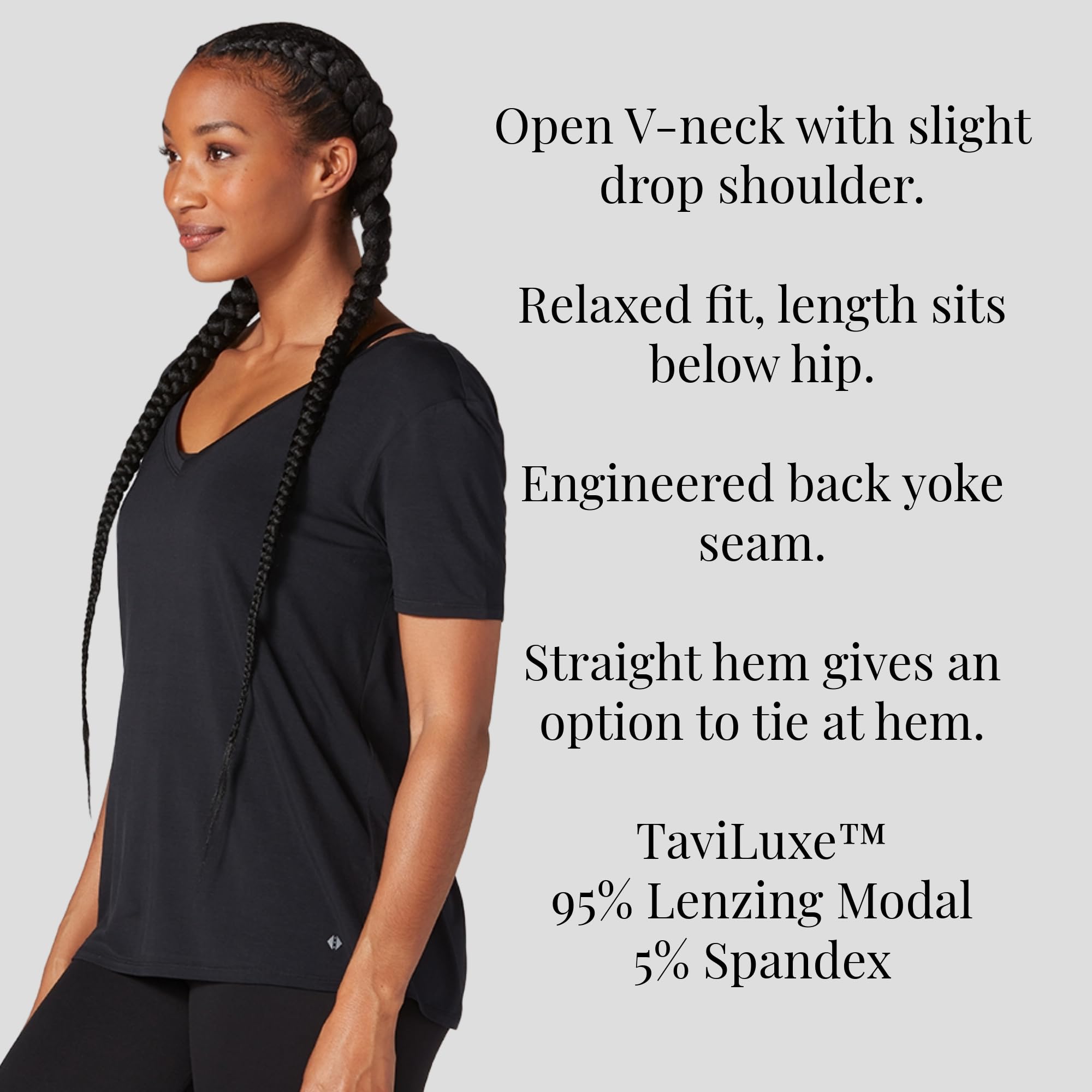 - VERSATILE SHIRTS FOR WOMEN: Tavi’s Everyday V-Neck Tee is a perfect wardrobe staple that has a relaxed fit and a slight drop in the shoulder. Layer this women’s t-shirt over your Tavi Bra to go to and from Pilates or use as comfortable everyday wear.